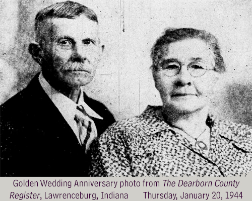 Mr. and Mrs. Hoffmeier were married Jan 23, 1894 at St. Martin’s church, Yorkville by the Rev Henry Boersic. Mr. Hoffmeier will be 79 years old on Feb 10 while his wife who was Mary A. Winter before her marriage will reach the age of 68 on July 8. Both are in good health. They have resided at the home where they now live for the past 49 years.